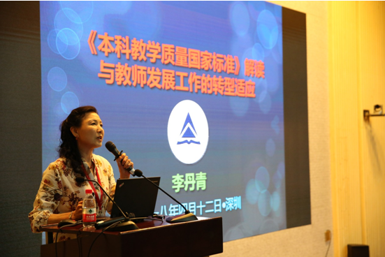 中国计量学院标准化学院院长、院校管理与标准化研究所所长、教育部高等学校公用工程类专业教学指导委员会委员李丹青教授做了题为“《本科教学质量国家标准》解读与教师发展工作的转型适应”的专题讲座。李丹青从高等教育质量及标准概述、专业类教学质量标准解读和教师发展工作的转型与适应三个方面介绍了教育质量的标准、专业类教学质量标准制定的意义、原则和内容。她建议《国标》颁布后要让教指委用起来、让高校动起来、与‘三个一流’建设紧密结合起来,要积极开展教师发展标准工作,学懂、弄懂、吃透《国标》,宣传、推广、解读《国标》,研究、探讨、落实《国标》。
