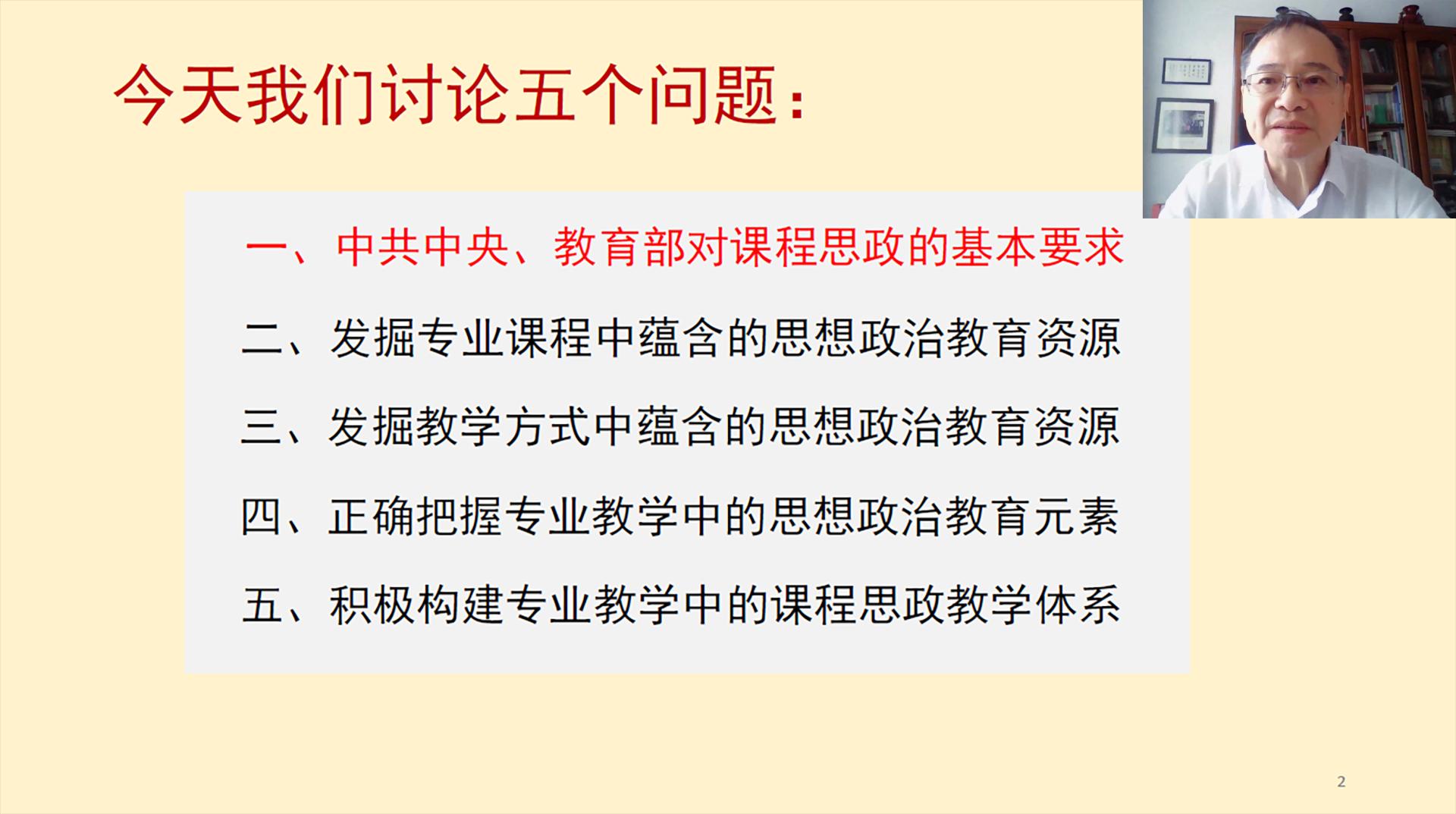 在思政资源的发掘和运用方面,张智强教授认为课程中的思想政治教育资源可以通过两种方式呈现在教学过程中,一是发掘课程本身蕴含的思想政治教育资源,融入教学过程各环节;二是通过一定的教学方式,将知识体系内外的思想政治教育资源有效融入教学过程。张教授从不同的学科背景出发,通过分享《人体解剖学》课程、《宇宙简史》课程、《国际商务》课程等优秀实例,展示了教师在专业知识体系中融入思想政治教育素材及元素的有效方法和具体路径。在正确把握专业教学中的思想政治教育元素和积极构建专业教学中的课程思政教学体系的两个部分中,张教授发表了独到的见解。