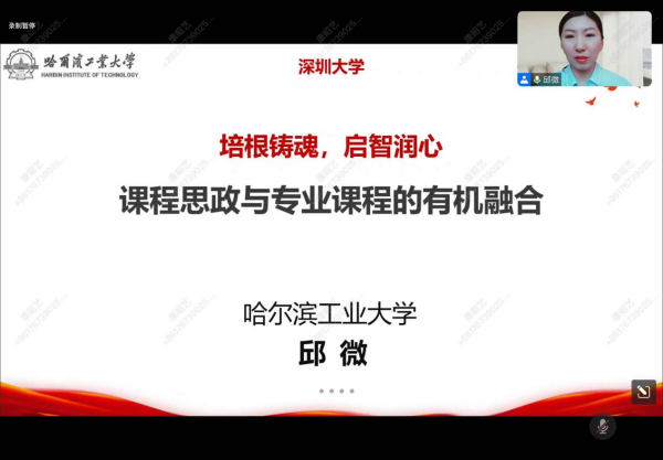 邱微教授分享了自身在哈尔滨工业大学教学时积累的课程思政经验,主要从“对课程思政建设的理解与认识”、“课程思政与专业课程有机融合”二个方面出发,结合习近平总书记重要发言,借助生动的案例、详实的素材,不仅帮助教师进一步理解课程思政的意义,也指导教师们如何润物无声、潜移默化的开展课程思政的教学实践。