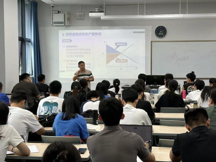 5月23日下午,由经济学院的何玲老师为青年教师带来《微观经济学》观摩课。何老师十分注重学情,先带领学生回顾上节课的知识点,做到温故知新,并将新旧知识结合贯穿起来,形成知识的串联。接着引入最低限价的概念,从背景到措施为同学们深入讲解其内涵和意义,讲解时充分展示动态折线图,并结合板书,使学生对课堂内容有更深的印象。何老师讲解时逻辑清晰,深入浅出,语言风趣幽默,细致严谨,关注学生动态,引导学生思考,课堂氛围浓厚,学生学习热情高涨。