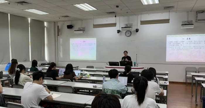 5月22日下午,人文学院的左江老师带来第四堂观摩课《南宋后期文学》。课堂伊始,左老师首先梳理了本堂课的教学内容,紧接着介绍南宋词人姜夔的生平,带领学生知人论世,最后引入姜夔爱情词,运用情境代入法引导学生赏析诗词,理解姜夔词所表达的情感,感受词人层层递进的情绪变化。第二部分介绍姜夔咏物词,将风格不同的两首词进行对比阅读,对重点的词、句进行梳理,使学生充分体会词人对意境的塑造和意象的传达。左江老师讲解时细致深入,重点突出,引经据典,同时关注学生学习动态,课堂氛围良好,学生参与度高。