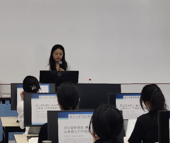 6月8日上午,丁婉玲老师为青年教师带来《SPSS应用》公开课。丁老师独具匠心地运用两篇期刊论文,结合其中所使用的因子分析方法,耐心细致地向同学们讲解探索性因子分析的步骤。丁老师擅长联系已学知识,在复习旧知的同时加深同学们对新知识的理解,循着从“应用—理论—理论背后的数学模型”的路径,层层深入,抽丝剥茧地向同学们传授知识。她的课程内容丰富,节奏紧凑,教学方法多样,课堂效果显著。