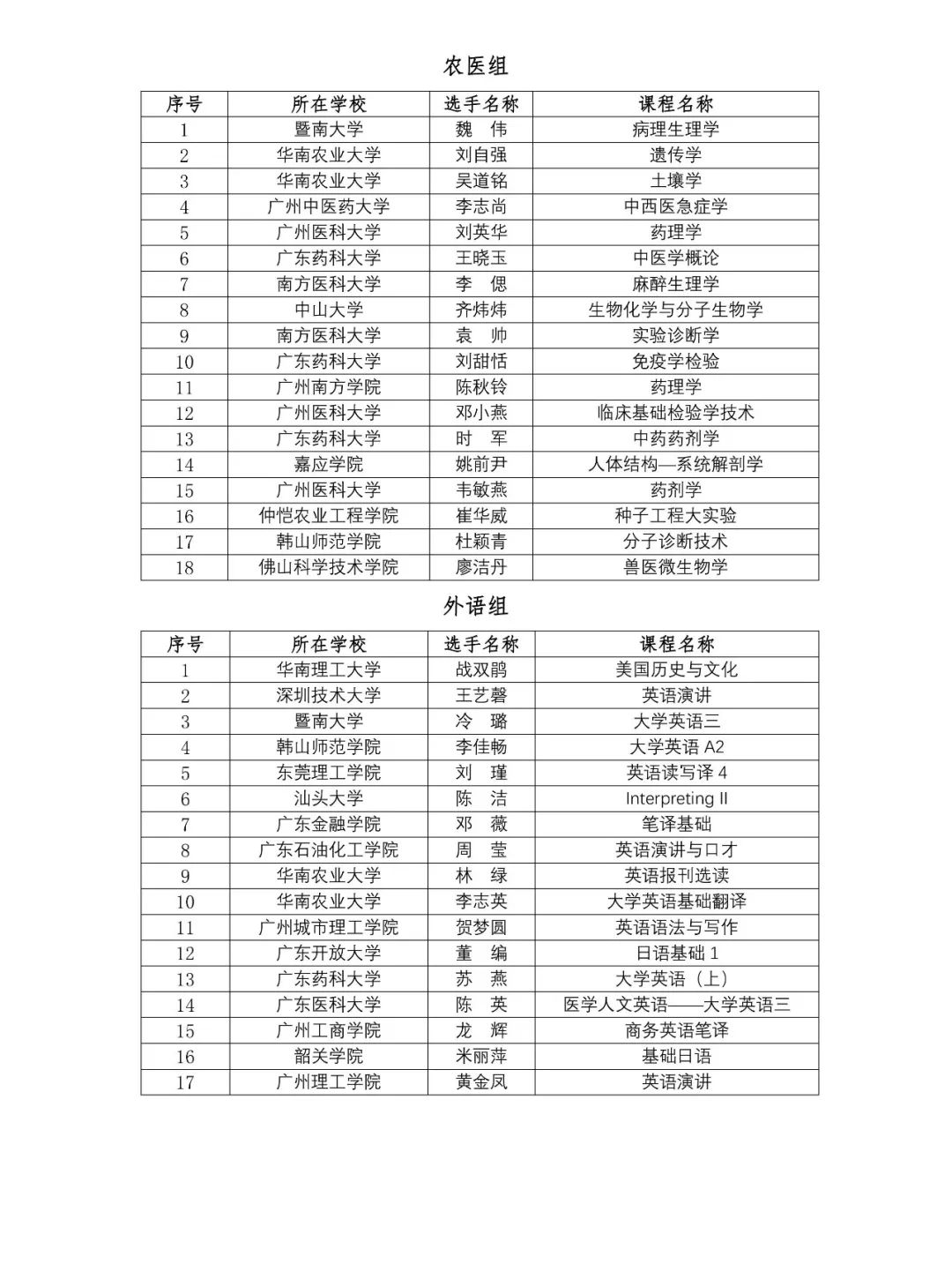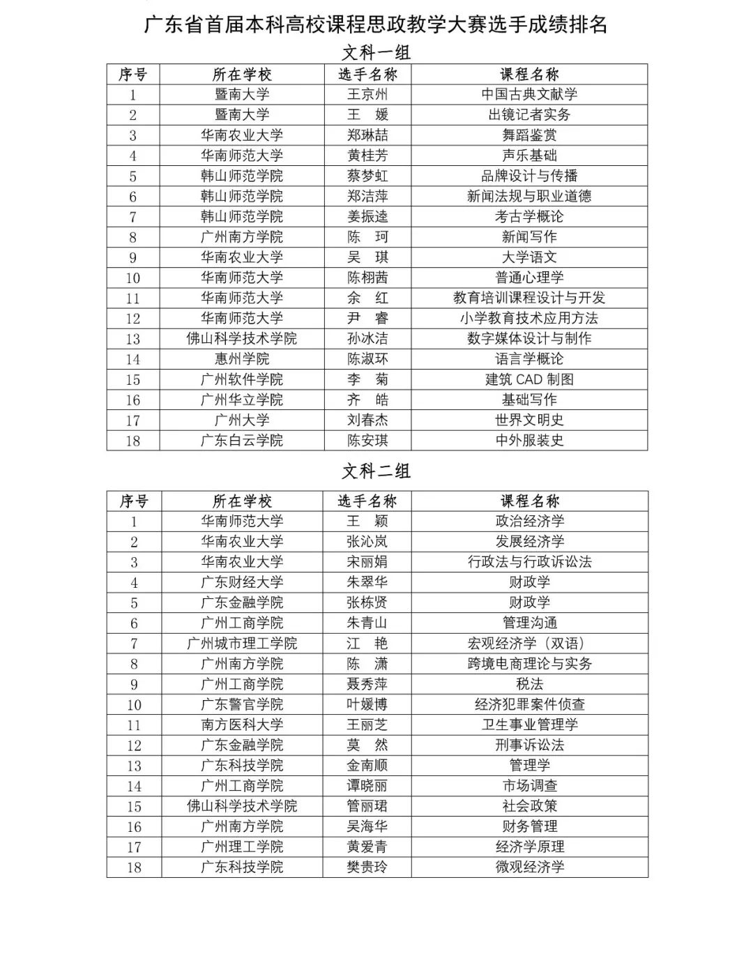 附件:广东省首届本科高校课程思政教学大赛选手成绩排名